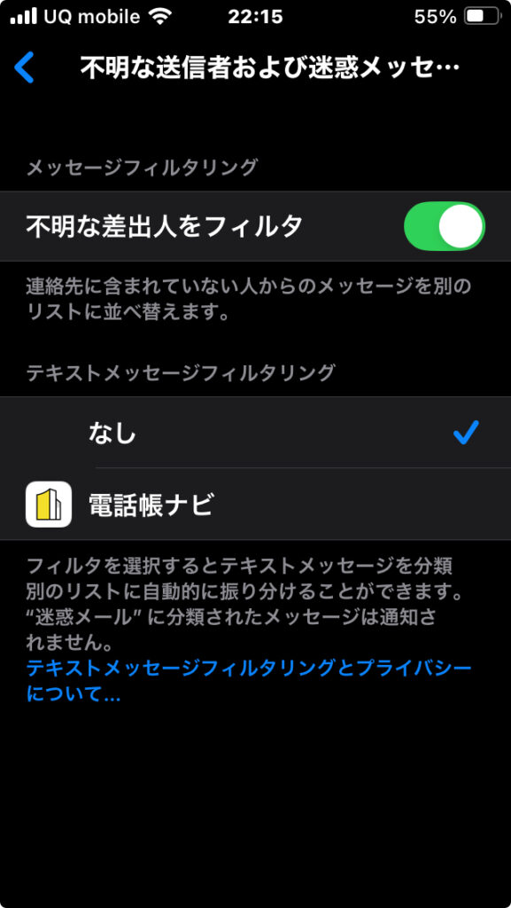 対策②:SMSの「迷惑メッセージ」を完全分離する